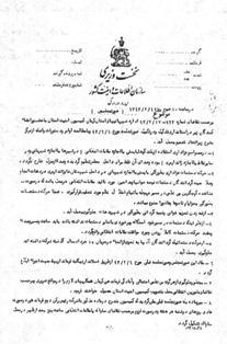 در ساعت 10 صبح روز 19 /2 /1343 بر حسب تقاضاى شماره 623ـ17 /2 /43 اداره شهربانيهاى استان كرمان كميسيون امنيت استان با حضور امضاء كنندگان زير در استاندارى تشكيل و در تكميل صورتجلسه مورخ 6 /2 /43 و با مطالعه اوامر و دستورات واصله از مركز به شرح زير اتخاذ تصميم به عمل آمد.