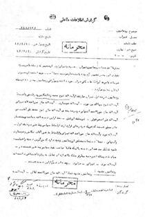 محترما مشخصات روحانيون تهران. مشهد و شيراز را روى ارجحيتى كه وسيله مأمور ويژه نفوذى اين بخش تعيين گرديده به استحضار ميرسد ضمنا جهت مزيد استحضار بعرض ميرساند مأمور مذكور اطلاعات كافى در اين مورد داشته و بيوگرافى روحانيون بخش 321 وسيله ايشان تنظيم مىگردد.