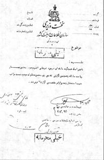 نظريه : با عرض اينكه هيچگونه سابقهاى در مورد شرفيابى افسر موصوف بحضور تيمسار رياست ساواك و همچنين گزارش تقديمى وى بحضور معظمله موجود نيست مراتب جهت استحضار و صدور اوامر مقتضى گزارشا عرض شد.