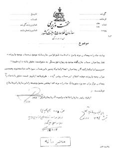 برابر نامه شماره 35/م ـ 21 /3 /42 فرماندارى مرند صادره به استاندارى آذربايجان شرقى در روز چهارشنبه 15 /3 /42 آقاى محمدعلى حريرى اهل يكان مرند ساكن فعلى تهران و آقاى حاج حسن حقيقت شغل بازرگان ساكن مرند به بانك صادرات و معادن مرند مراجعه و به عنوان اينكه در مركز وسيله اشخاص خير و نيكوكار بيمارستانى ساخته مىشود تقاضاى افتتاح حساب و مطالبه كارت معرفى امضاء مىنمايند آقاى رئيس بانك هم مطابق اصول بانكى حساب شماره 490 را تعيين و دو برگ كارت معرفى امضاء به نامبردگان تحويل و يكى از مراجعهكنندگان به نام محمدعلى حريرى بهعنوان اينكه نام و هويت صاحبان امضاء را در تهران تنظيم خواهد كرد كارتها را با خود به تهران مىبرد چون افتتاح حساب مزبور در روز 15 /3 /42 كه بلوا و آشوبى از طرف پارهاى عناصر اخلالگر در مركز به عمل آمده بود مشكوك به نظر رسيده موضوع از طرف فرماندارى تحت بررسى قرار مىگيرد.
