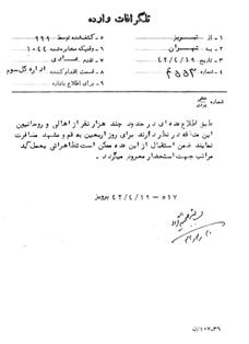 تصمیم جمع کثیری از مردم و روحانیون آذربایجان به سفر به قم و مشهد در روز اربعین محرم 1342 19/4/1342