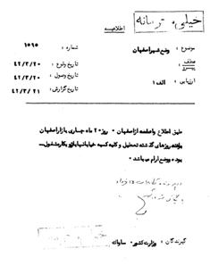 طبق اطلاع واصله از اصفهان روز 20 ماه جارى بازار اصفهان به مانند روزهاى گذشته تعطيل و كليه كسبه خيابانها باز و به كار مشغول بوده و وضع آرام مىباشد.