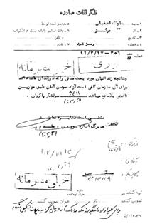 از طرف مديركل اداره سوم. ن. مقدم 29 /3 /42