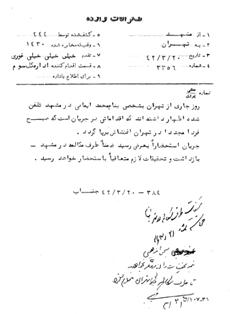 ضميمه تحقيقات را از مشهد بخواهند تا طرف مكالمه به تهران معلوم شود. 25 /3