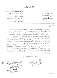 بخش 313 فورا ضمن اقدام اداره سوم در جريان قرار گيرد. 25 /3 /42