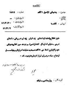طبق اطلاع واصله از دامغان زندانيان زندان شهربانى دامغان شرحى به عنوان اداره كل انتشارات و راديو نوشته حين اعلام پشتيبانى خود را از لوايح اصلاحى 6 گانه نسبت به عمليات اشرار فارس و عوامل ارتجاع سياه در تهران ابراز انزجار و تنفر نمودهاند.