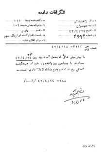 با پيشبينىهايى كه بعمل آمده بود روز 24 /4 /42 مصادف با چهلمين روز واقعه 15 خرداد هيچگونه اتفاقى رخ نداده و وضع منطقه كاملاً عادى است.