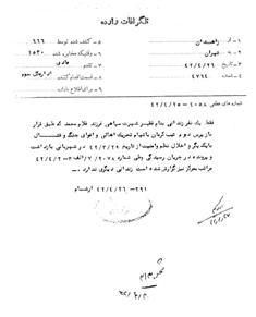در روزهای پس از خرداد42 فقط یک نفر در شهربانی زههدان به جرم اخلال بازداشت گردید 29/3/1342