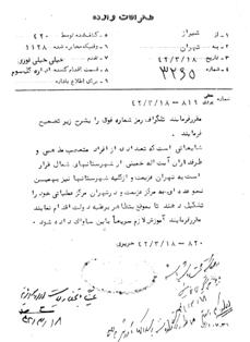 عينا به استحضار رياست اداره سوم 18 /3 /42