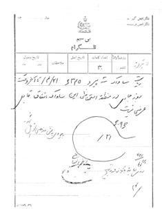 رياست ساواك 3 پيرو 6345 ـ 21 /4 /42 تا آخر وقت روز جارى در منطقه استحفاظى اين ساواك اتفاق قابل عرضى نيست.