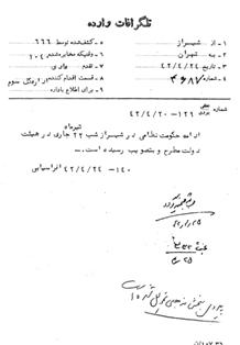 تصویب ادامه حکومت نظامی در شهر شیراز 24/4/1342