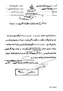 دستور ساواک تهران به ساواک قزوین جهت آزادی دستگیر شدگان 15خرداد به قید قرار ضمانت 27/5/1342