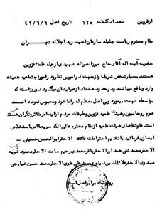 نامه عدهای از روحانیون قزوینی به ساواک تهران جهت آزادی آیتالله نصراله شهیدی 6/6/1342