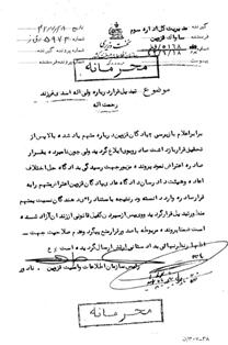 اعتراض یکی از بازداشتی های 15خرداد قزوین به نام ولی الله اسدی به قرار بازداشت صادره 28/7/1342