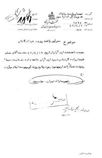 اخراج یکی از کارمندان شهر آران-کاشان به علت شرکت در قیام 15خرداد 19/4/1342