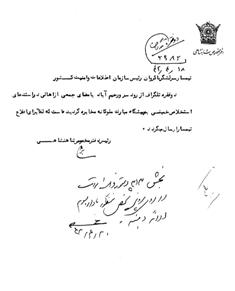 دو فقره تلگراف از رودسر و رحيمآباد به امضاى جمعى از اهالى در استدعاى استخلاص خمينى به پيشگاه مبارك ملوكانه مخابره گرديده است كه لفا براى اطلاع تيمسار ارسال مىگردد.