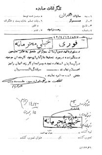 دستور فرماييد ضمن ارسال بيوگرافى ملصق به عكس متهمين دستگير شده در مورد تحقيقات از آنان از وجود كارمندان موجود در آن سازمان استفاده نموده و سرانجام كار زندانيان را نيز اعلام نمايند.
