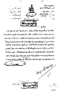 گيرنده : تيمسار رياست ساواك مديريت كل اداره سومتاريخ : 4 /4 /43