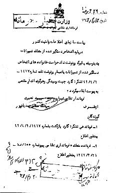 2ـ فرمانده منطقه 5 فرماندارى نظامى پيرو شماره 155/ ف 1 ـ 31 /3 /1342 به منظور اطلاع.