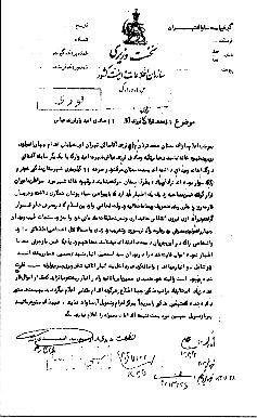 به موجب اعلام ساواك سمنان محمد ترلانزاده فرزند آقا ساكن تهران اول خيابان اعدام چهارراه مولوى روبروى قهوهخانه مشهدى عباس تكيه و صادق فرزند عباس شهرت اميدوار كه با يكديگر سابقه آشنايى در گذاخانه و ميدان داشتهاند به سمت سمنان حركت و در سرخه 24 كيلومترى شهرستان مذكور خودرو را كه سوار بودهاند ترك و پياده به طرف سمنان حركت مىنمايند در قهوهخانه شهر مورد سوءظن مأموران قرار گرفته ضمن مصاحبه رديف يك اظهار مىدارد كه با پيراهن سياهپوشان همكارى داشته و جريان غارت روز را به طرز زننده تعريف و به مقامات عاليه و دولت فحاشى و از دين اسلام كه در معرض خطر قرار گرفته و تيراندازى نيروى انتظامى جانبدارى و ضمن تحقيقات مقدماتى خود را جزو دستجات طيب و ميدان چهارراه مولوى معرفى و در غارت و آتشسوزى و تخريب و دزدى و احتمالاً قتل اشخاصى اطلاعاتى دارد و اشخاصى را كه در اين جريان دست داشتهاند مىشناسد ضمنا متهم رديف يك ضمن بازجويى مجددا اظهار نموده اموال غارت شده را در ميدان سيداسمعيل انبار مشهدى حسين هميار ريختهاند (و شامل دو انبار مىباشد) و اضافه كرده در داخل يك انبار اثاثيه تلفن و برق و سرب و لوله ــ غارت شده موجود است اينك مراتب مذكور جهت اطلاع و هرگونه اقدام مقتضى اعلام مىگردد. بديهى است دستور داده شده كه متهمين مذكور را سريعا به مركز اعزام و تحويل آن ساواك نمايند. عليهذا دستور فرماييد پس از تحويل متهمين مورد بحث نتيجه اقدامات معموله را اعلام نمايند.