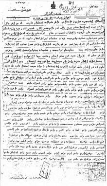 پيشگاه اعليحضرت همايون شاهنشاهي خاطر ملوكانه استحضار دارند كه بر اثر بازداشت حضرت آيتالله العظمي مرجع عاليقدر عالم تشيع آقاي خميني قلوب مرد و زن مسلمان ايران جريحهدار گرديده و اضطراب عظيمي در تمام شئون ملي رخ داده كه جز با آزادي معظمله به هيچنحو ديگري تسكينپذير نيست. زنان مسلمان ايران افتخار دارند كه در پرتو تعاليم مقدسه اسلامي از حقوق و مواهبي برخوردارند كه زنان اروپايي هنوز به عشري از اعشار آن نائل نگرديدهاند و بنا به حكم محكم قرآن مجيد و تعليمات پيشوايان جليلالقدر روحاني از هر عملي كه خارج از حدود شرع مطهر اسلام و تقليد بيجا از جوامع اروپايي و غيرمسلمان باشد اظهار نفرت و انزجار مينمايند. هياهوي چند زن بيكار و بياطلاع از حقوق زن در اسلام دليل خواست اكثريت زنان مسلمان ايران نيست. استدعا دارد با صدور فرمان آزادي حضرت آيتالله و ساير رجال روحاني مقرر فرمايند مراتب معروضه به دولت ابلاغ شود.