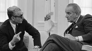 مرگ نابهنگام کندی و به قدرت رسیدن لیندون جانسون (69- 1963) سرآغاز بهبود روابط ایران و آمریکا بود. محمدرضا پهلوی در دوران جانسون، دو بار (در سالهای 1343 و 1347) بهطور رسمی از آمریکا دیدن کرد. امیرعباس هویدا – نخستوزیر - نیز در پاییز سال 1347 به آمریکا رفت. در این دوران چند نفر از مقامات سیاسی و سرمایهداران آمریکایی نظیر برادران راکفلر نیز به ایران آمدند. روابط حسنه جانسون و محمدرضا تا آنجا بود که جانسون در 27 ژوئن 1968 در نامهای به آرمین مایر، سفیر ایالات متحده در ایران نوشت «دوستی و همبستگی من با اعلیحضرت یکی از عوامل مسرتبخش دوران حکومتم بوده است!»[2]