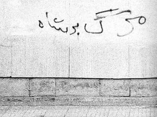 «ساعت 9 صبح روز جاری از دبیرستان شاهپور[1]... اطلاع دادند که شب گذشته در پشت دیوار دبیرستانِ مزبور، شعارهای ضد ملی (مرگ بر شاه خائن و غیره) با خط قرمز و درشت نوشته شده است که مقداری از آن را به دستور رئیس دبیرستان شاهپور پاک نمودند و مقداری از آن برای بازدیدِ مأمورین سازمان باقی است، لذا ایجاب مینماید خیلی فوری اقدام نمایید و نتیجه را بهطور مشروح به عرض مقام ریاست و معاونت ساواک برسانید.»[2]